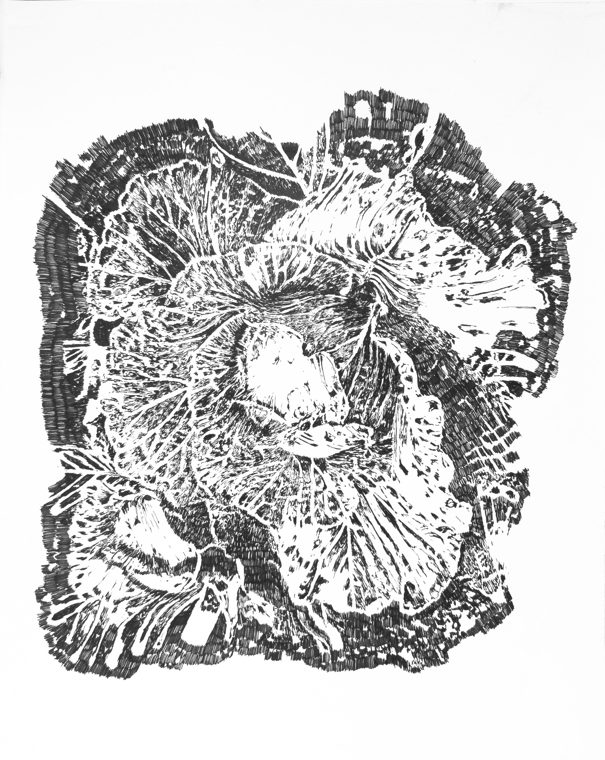 « Organique Christique», feutre noir pigmentaire sur papier, 48 x 37 cm , 2024