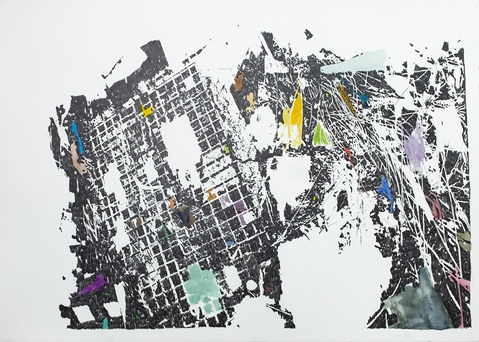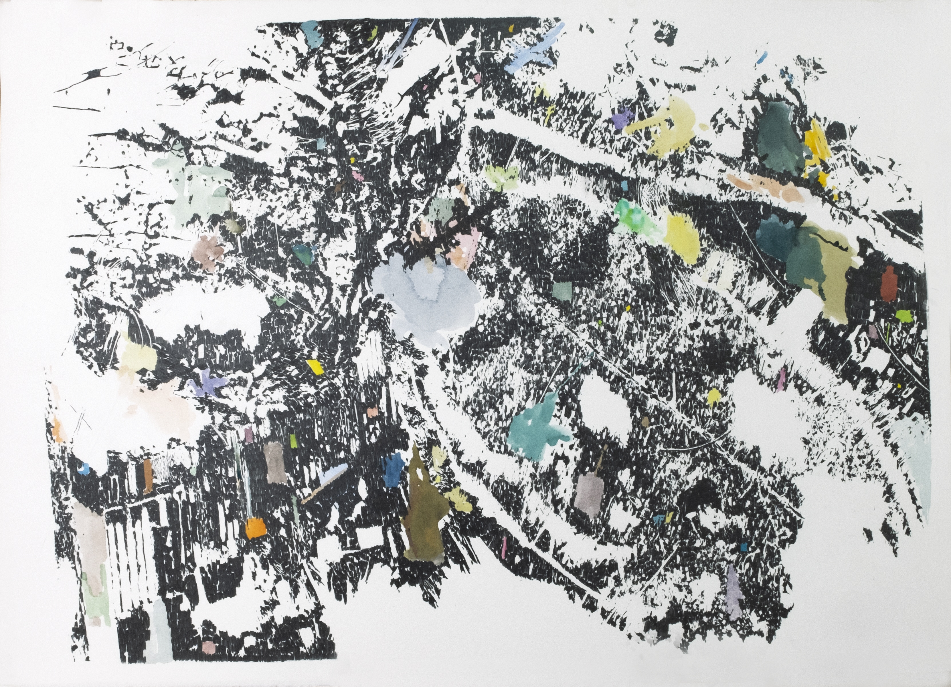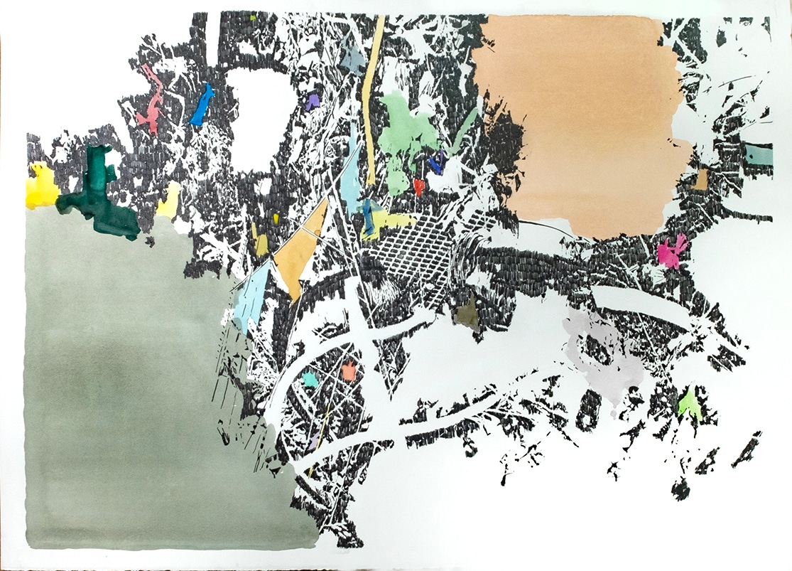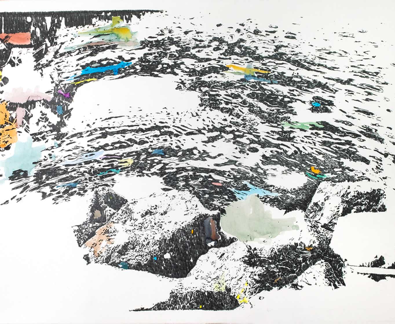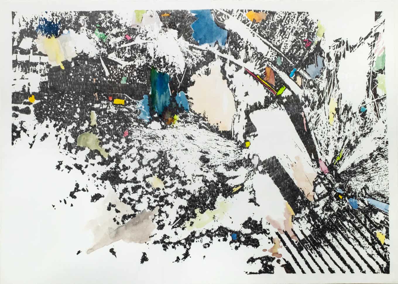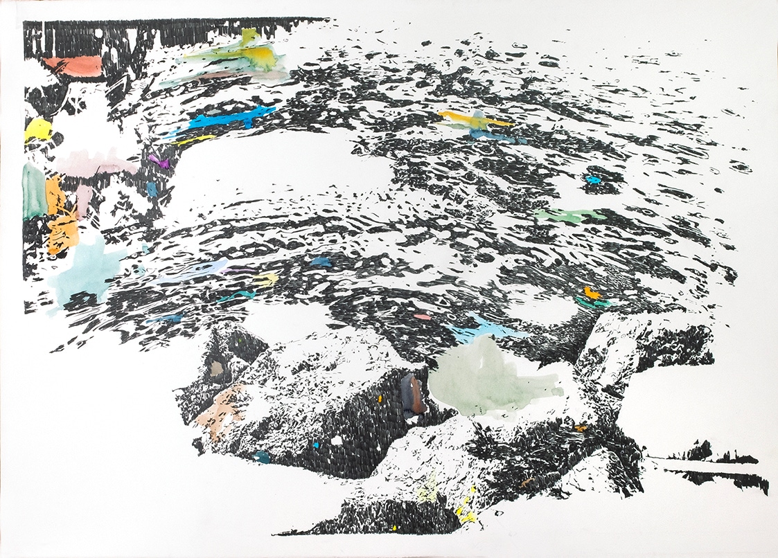 Crayon gris et aquarelle sur papier, 75x105 cm