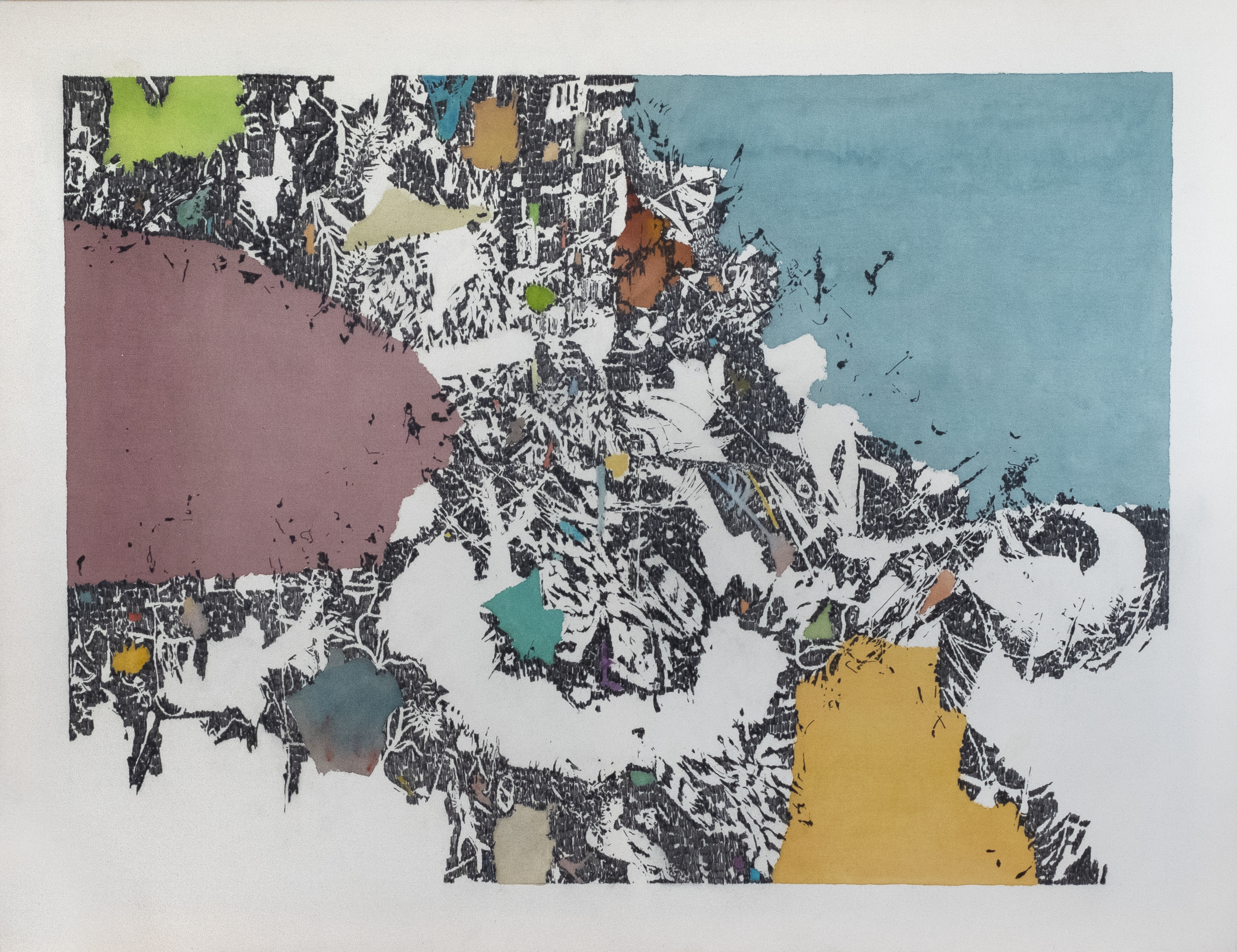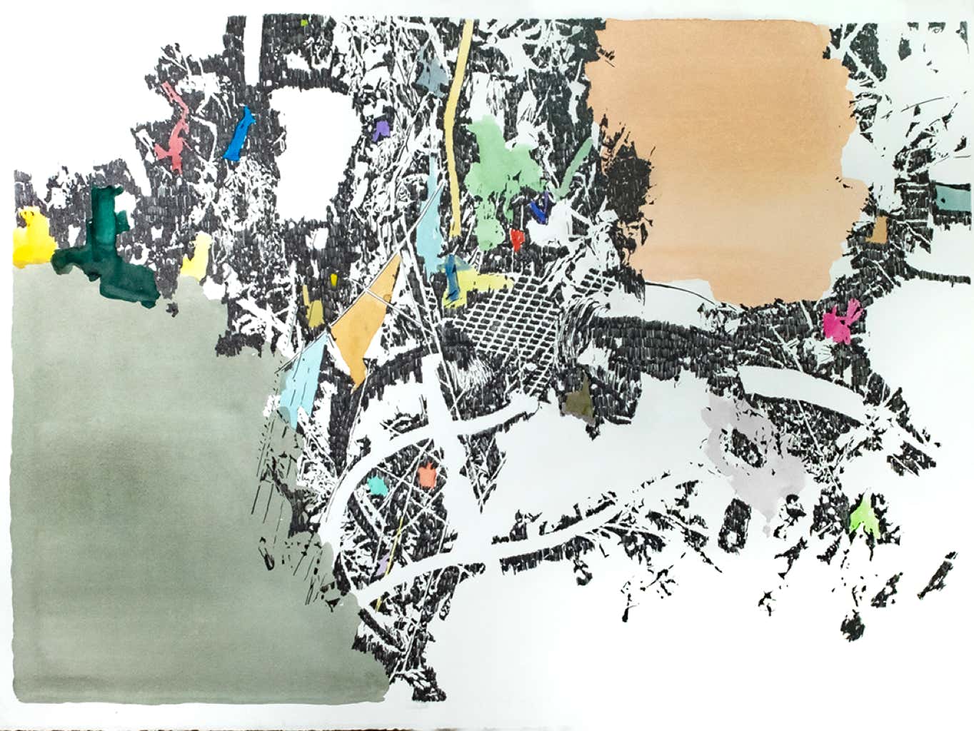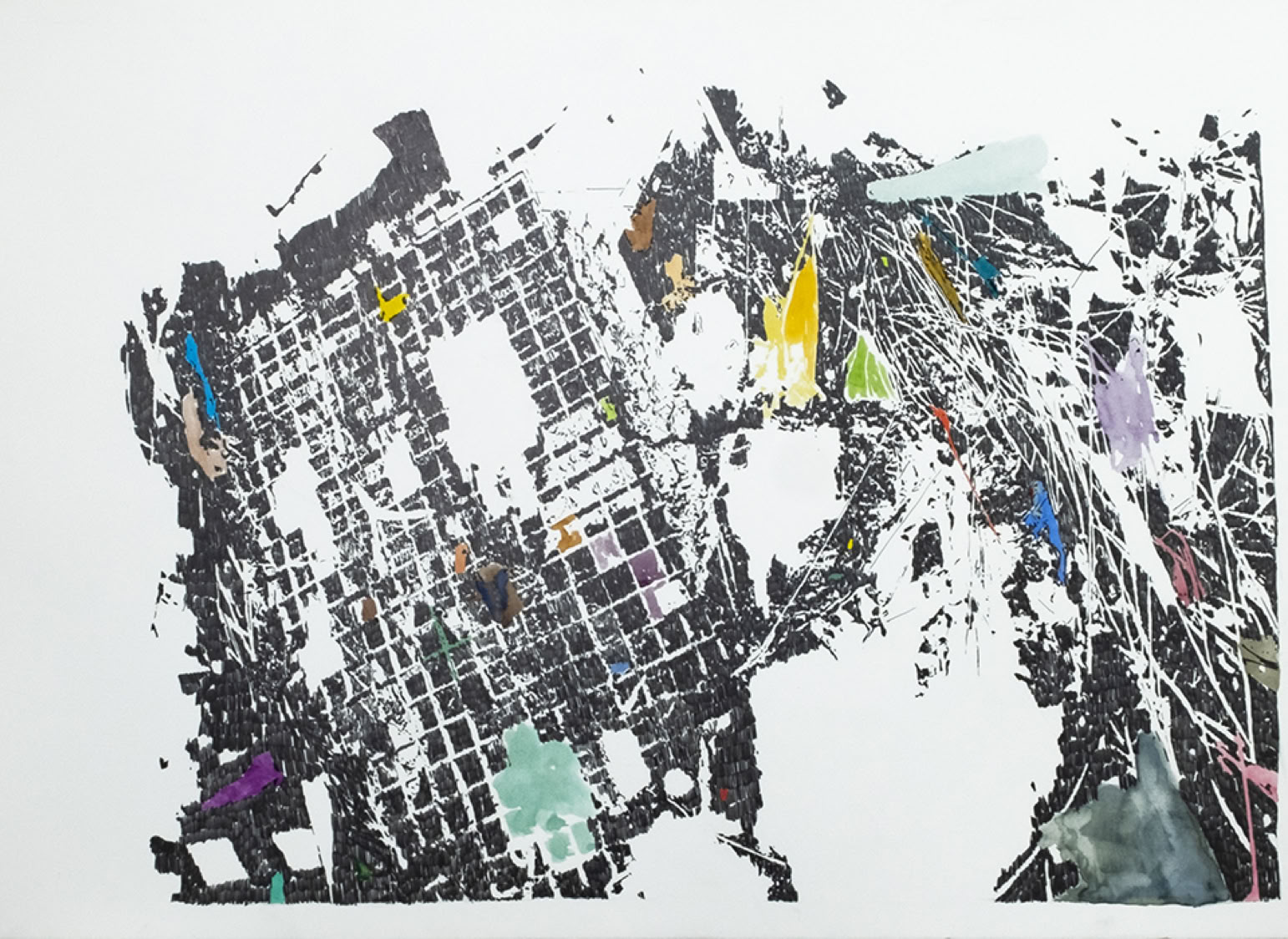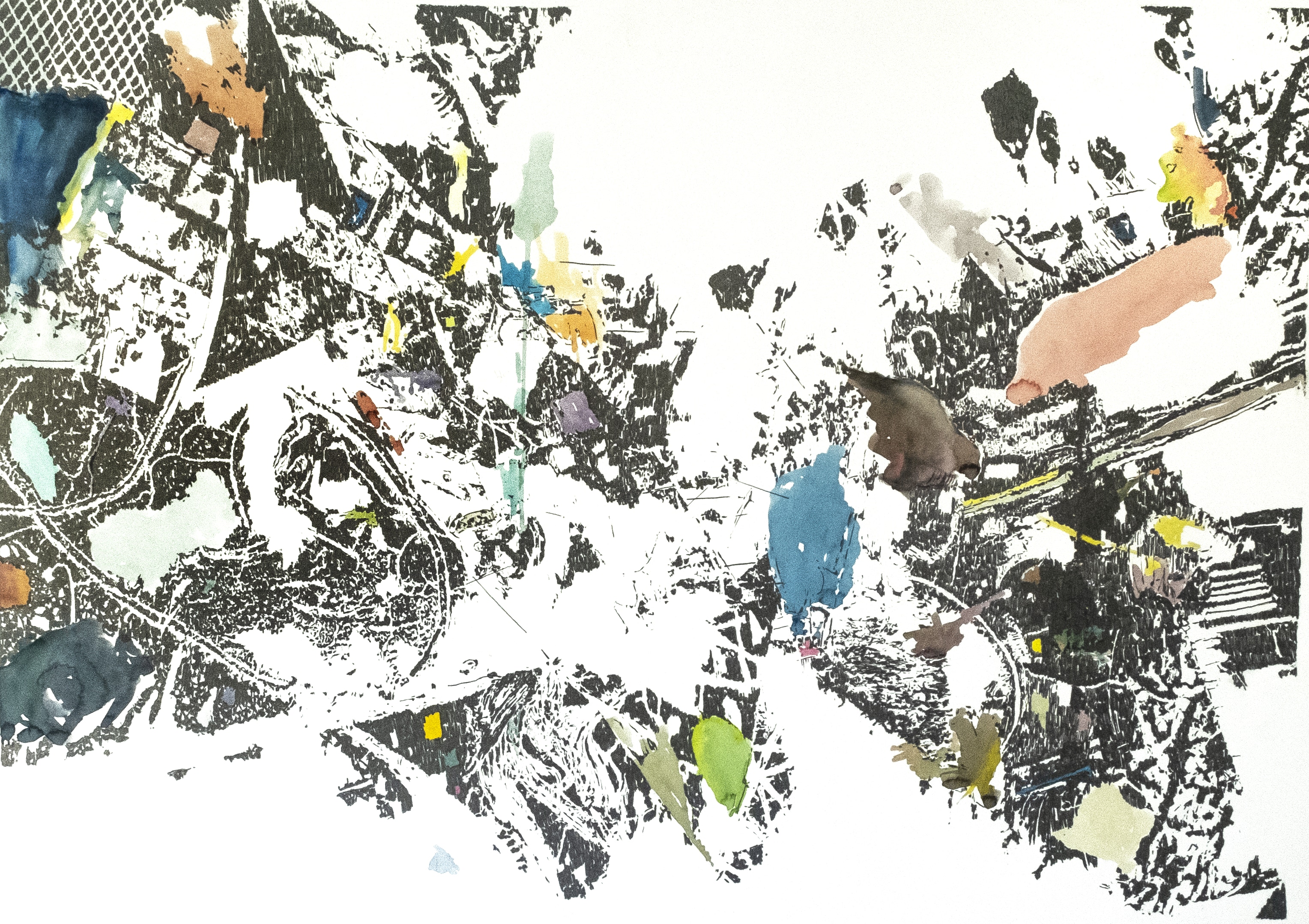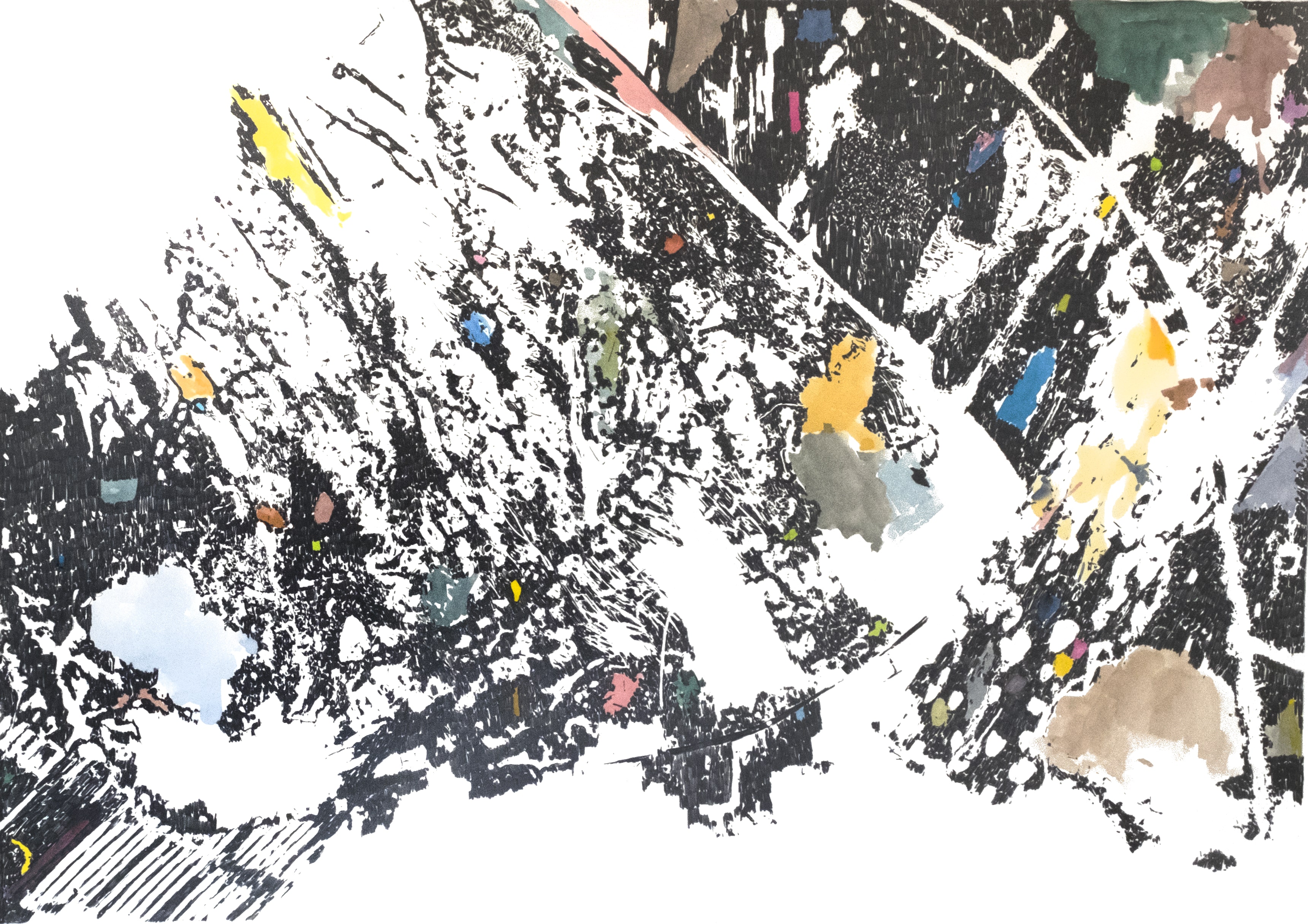 Crayon gris et aquarelle sur papier, 75x105 cm