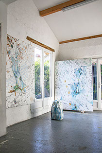 He explores the idea of time, through his work as an artist, and by using drawing and sculpture as a way to resist the constant stream of instant images that characterizes our current period. His installations include various kinds of spatialization that interweave a plurality of space-times and connect reality with virtuality, figuration with abstraction, and geometricity with organic forms. He brings polychrome Icebergs into resonance with monumental drawings of abstract structures, materializes Météorites made of stainless steel, represents Formations nuageuses or Vortexes, and produces very large paintings, based on fragments of scientific images, which question our relationship with memory, erasure, the environment, modernism and the current digitization of images.
