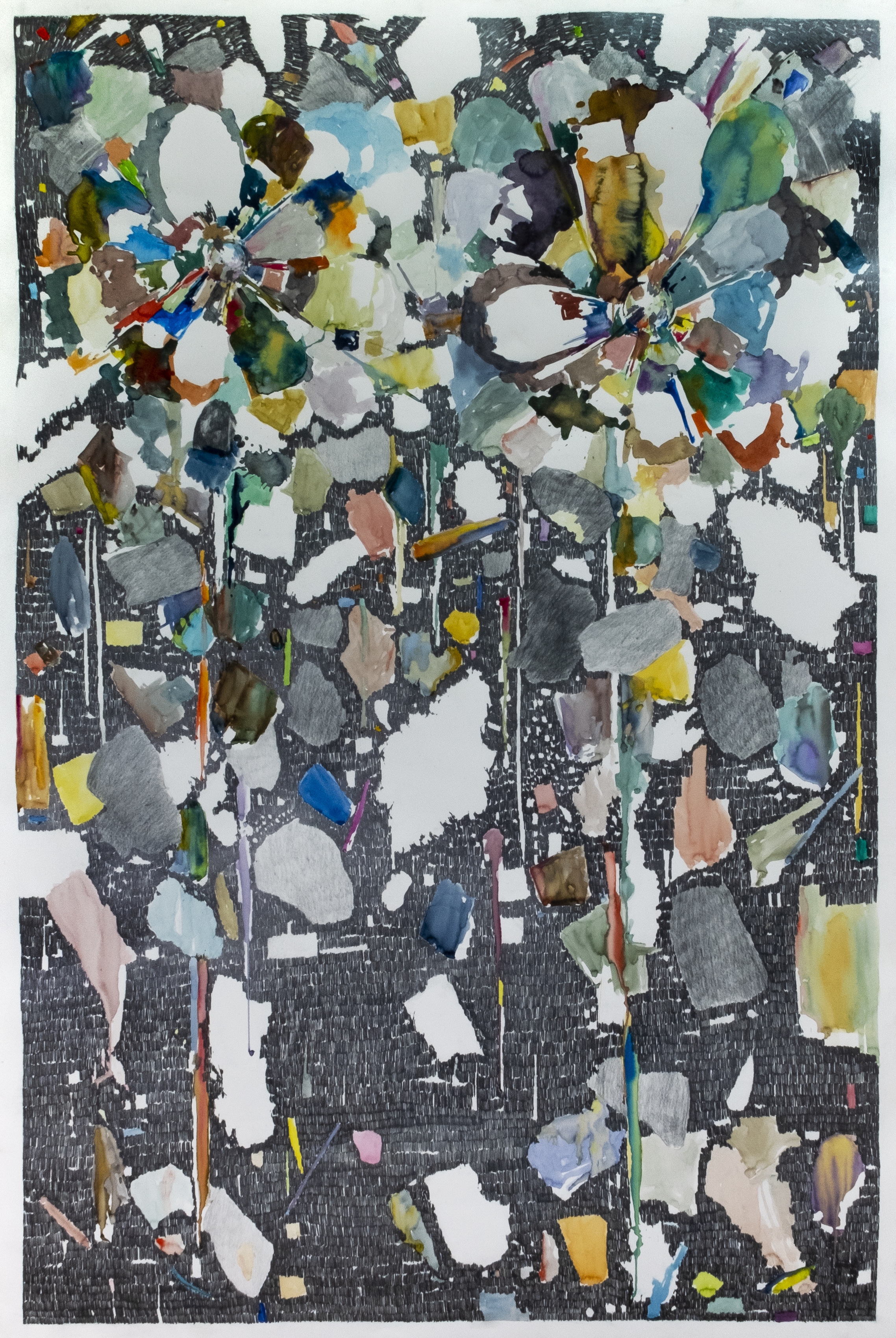 Crayon gris et aquarelle sur papier, 220x115 cm