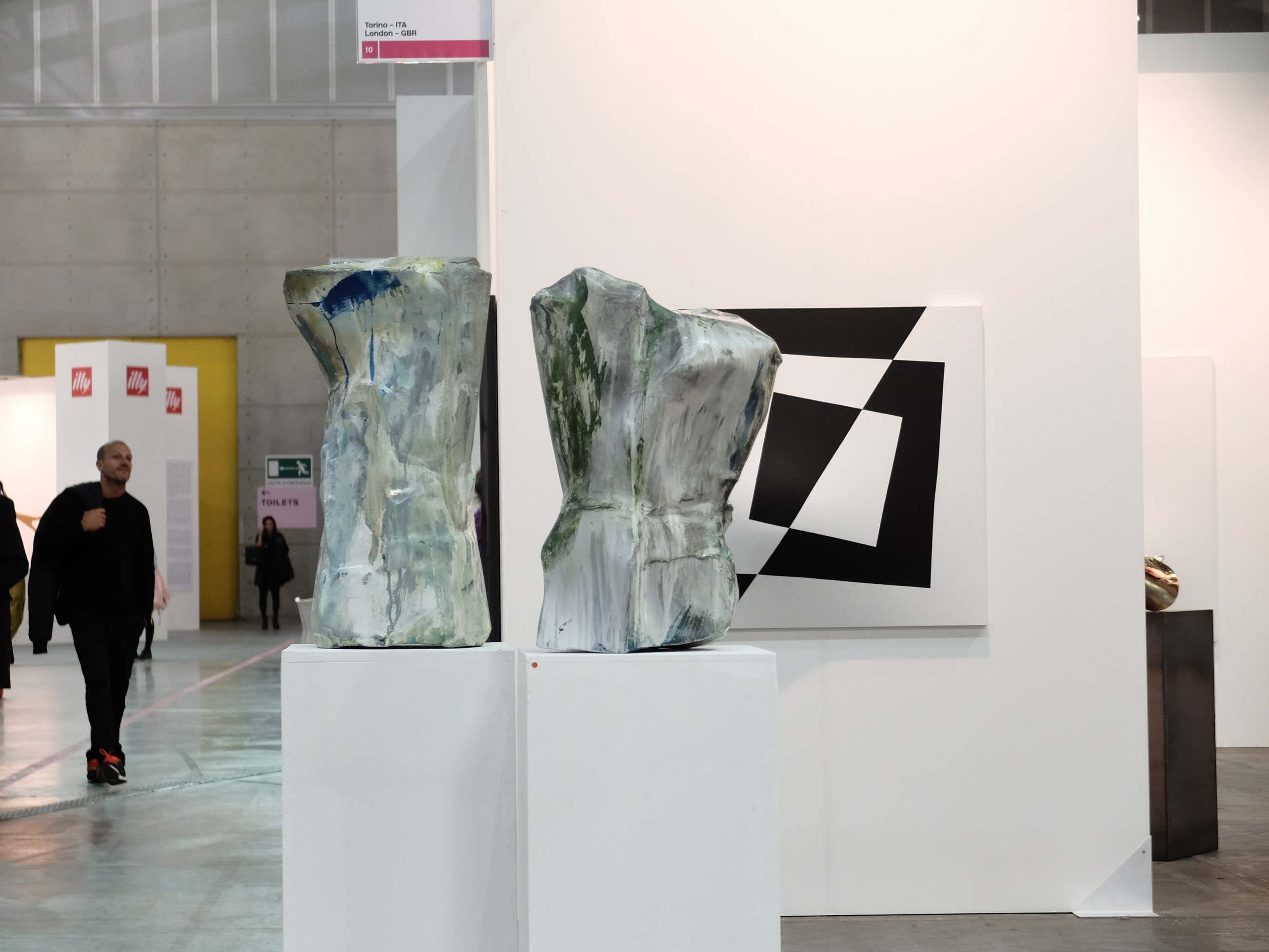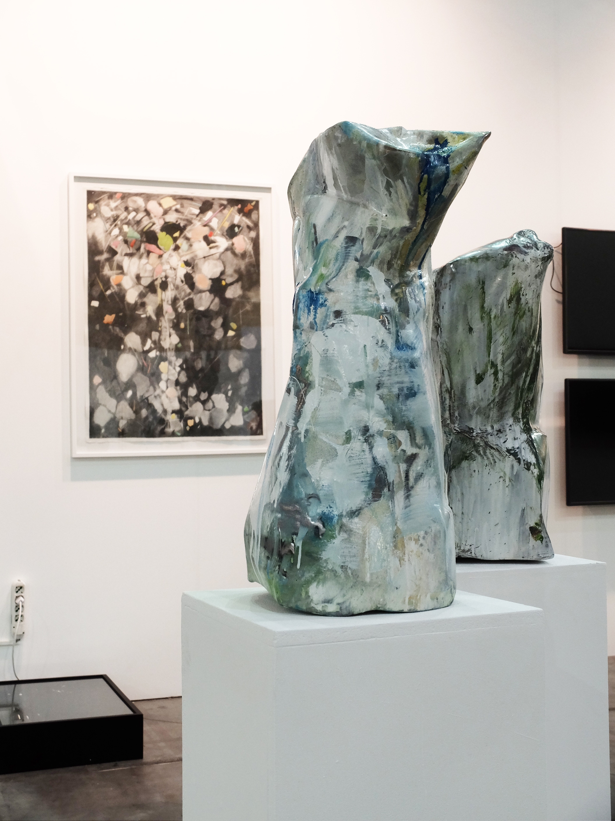 Présentation de sculptures de la série Iceberg et d'un dessin de la série Comme une formation nuageuse sur le stand de la galerie Analix Forever.
