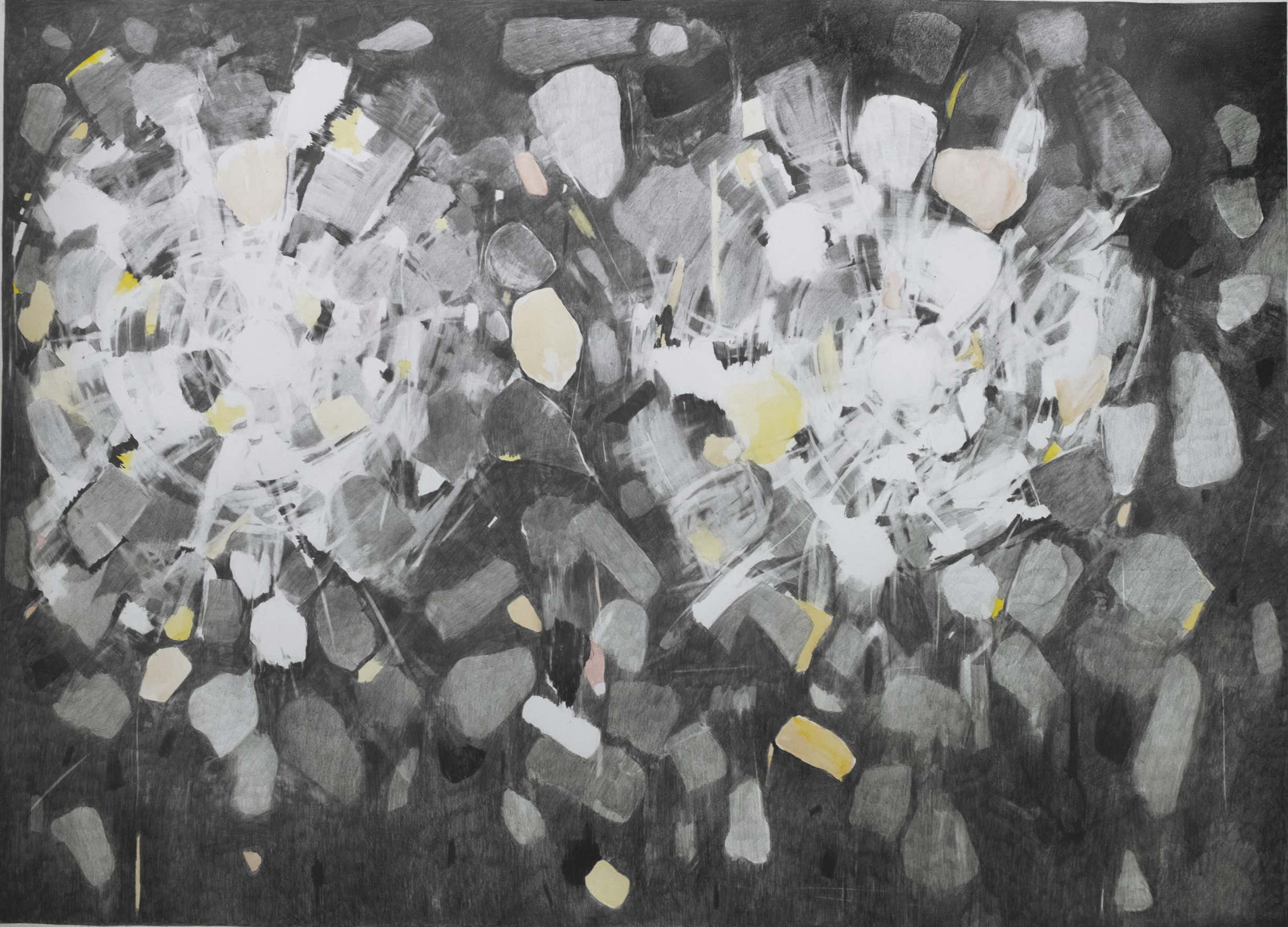 Burning Snow I, crayon gris et aquarelle sur papier, 2017, 130x 180 cm